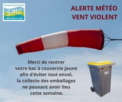 Afin d’éviter tout risque d’envol, il est demandé aux habitants des communes où la collecte des emballages ne pourra pas être assurée cette semaine de rentrer leur bac à couvercle jaune.