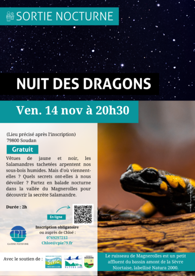 Sur inscription : Nuit des Dragons à Soudan ou auprès de Chloé 07 69 29 72 12, chloe@cpie.fr.