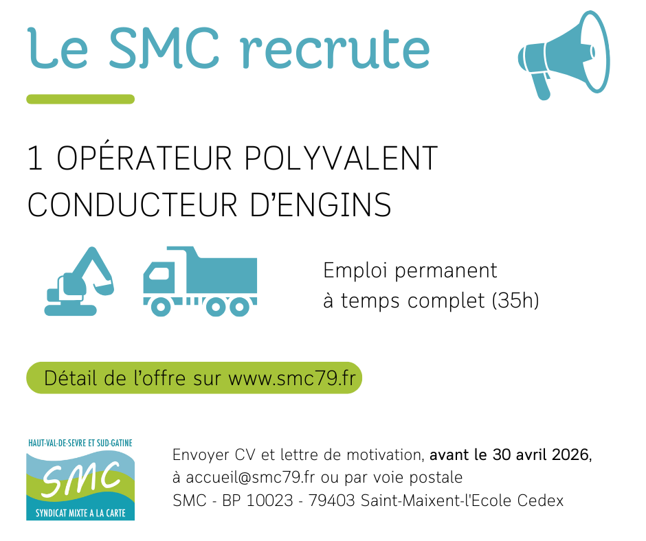 Merci d’adresser votre candidature (CV et lettre de motivation) à l’attention de Monsieur le Président par courrier ou par mail (accueil@smc79.fr) avant le 30 avril 2026.
