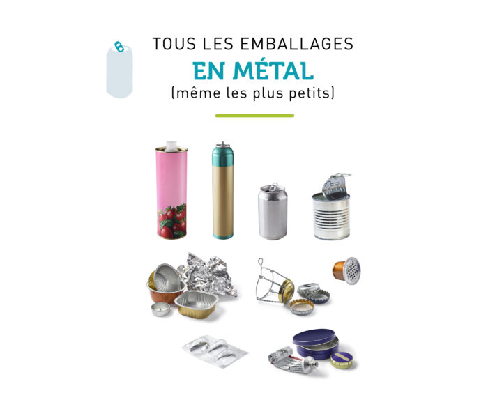 Tous les emballages en plastique (de la bouteille d’eau au sachet de bonbons en passant par le filet de citrons), tous les emballages en métal (capsule de café ou de bouteilles, aérosols ou encore cannette de soda), et toutes les cartonnettes et briques alimentaires. Idem pour les papiers (du mot doux au journal du jour) : c’est dans le bac jaune !